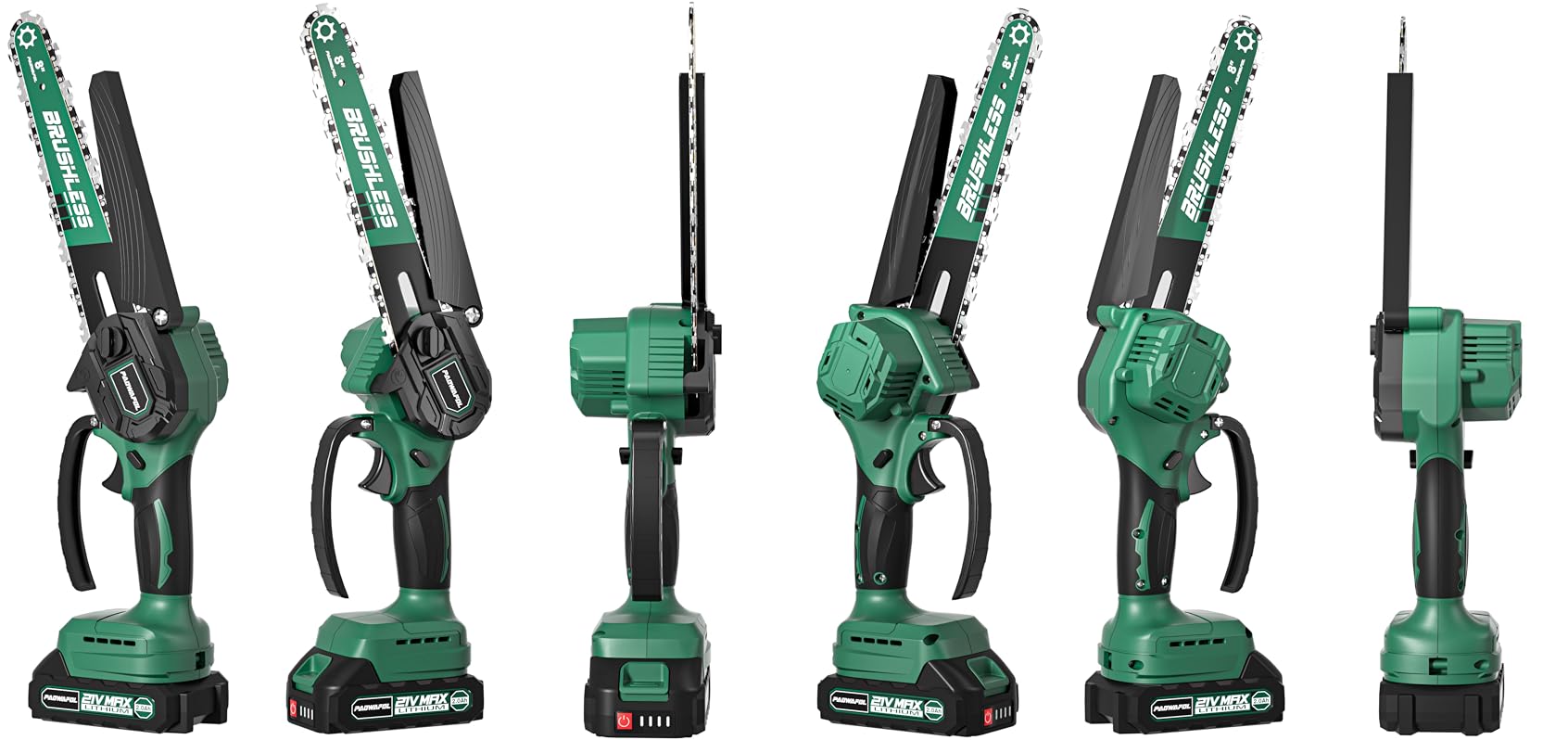- đ˛ăHigh-efficiency Brushless Motor ăThe 8 in cordless mini chainsaw is built with brushless powerful motor. Best small power saw is designed to maximize run time and motor life with up to 60 cuts per charge.